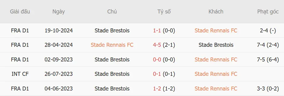 1. Phân tích phong độ thi đấu giữa Rennes và Brest